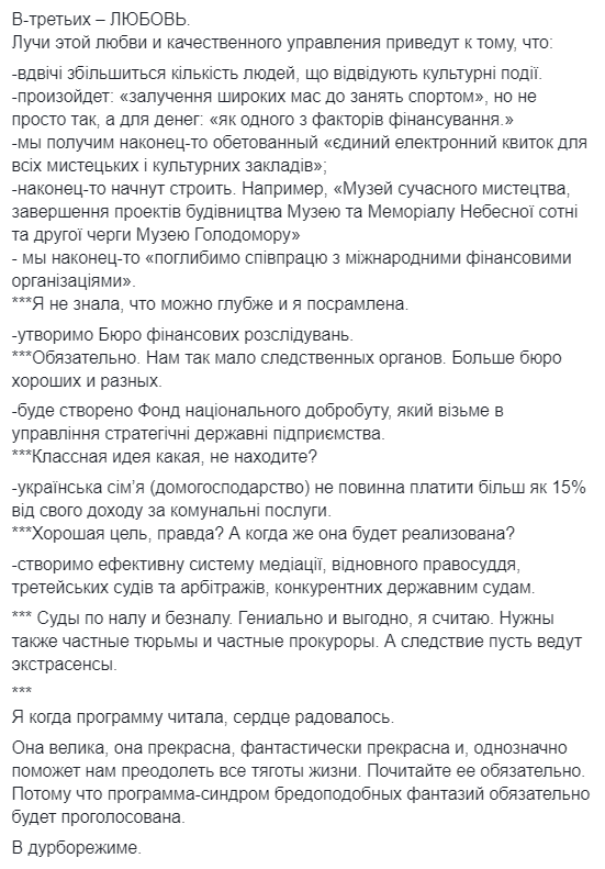 Читаю программу деятельности правительства. Утираю слезы радости. Такой удивительной программы я не читала никогда.