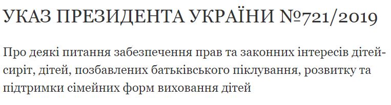 Президент Владимир Зеленский подписал указ №721/2019 о некоторых вопросах обеспечения прав и законных интересов детей-сирот, детей, лишенных родительской опеки, развития и поддержки семейных форм воспитания детей.