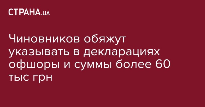 Чиновников обяжут указывать в декларациях офшоры и суммы более 60 тыс грн