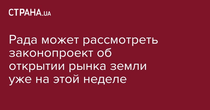 Рада может рассмотреть законопроект об открытии рынка земли уже на этой неделе
