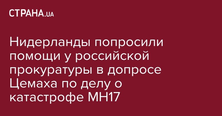 Власти Нидерландов обратились в прокуратуру России с просьбой содействовать в поиске Владимира Цемаха, которого голландские органы правопорядка хотели допросить по делу о крушении малайзийского Boeing в июле 2014 года. Об этом передает "Интерфакс".