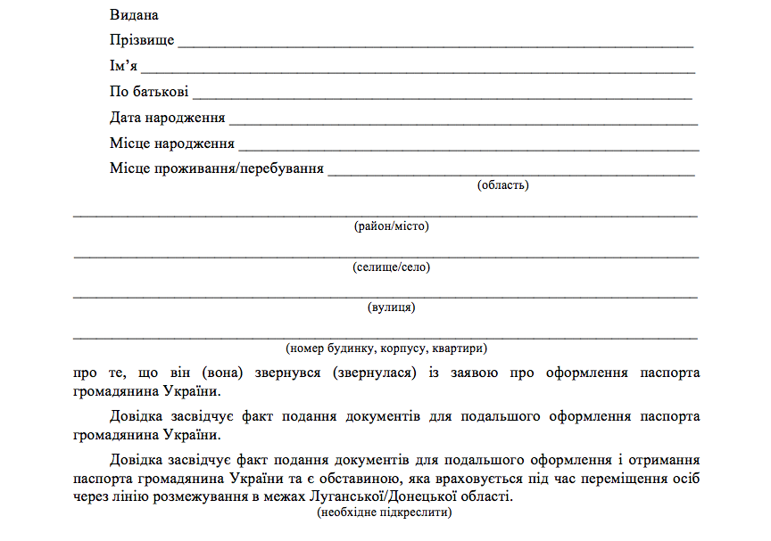 "Въезд в "ЛДНР" граждан Украины, которые выехали оттуда для оформления паспорта осуществляется при предъявлении справки, выданной миграционной службой", - говорится в постановлении Кабмина.