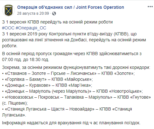 Напомним, что с 1 сентября КПВВ на Донбассе перешли на осенний режим работы.