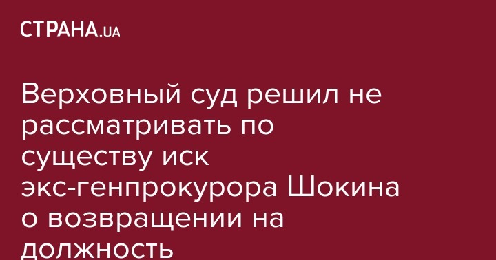 Верховный суд решил не рассматривать по существу иск экс-генпрокурора Шокина о возвращении на должность