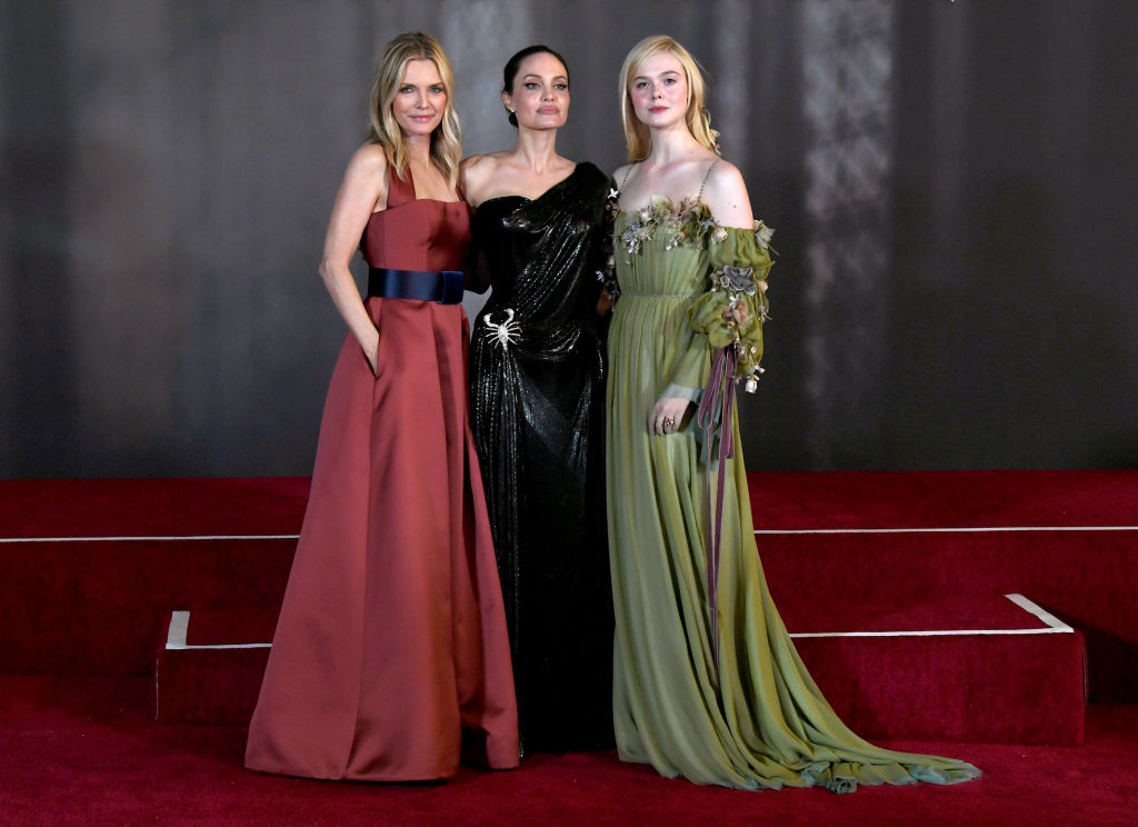 Кроме главной героини вечера на премьере показались другие актрисы, снявшиеся в "Малифисенте": Мишель Пфайффер и Эль Фаннинг.