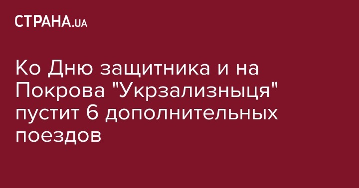 "Укрзализныця" назначила шесть дополнительных поездов ко Дню защитника Украины и Покровы Пресвятой Богородицы. Об этом сообщает пресс-служба компании.