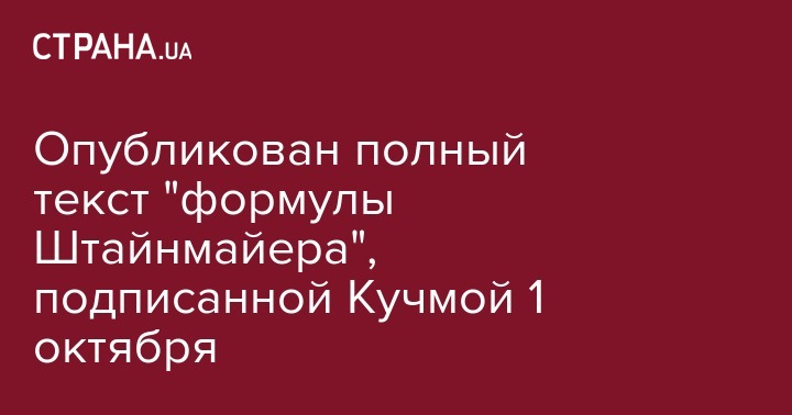Появился текст документа, закрепляющего "формулу Штайнмайера", который 1 октября на заседании Трехсторонней контактной группы подписал представитель Украины Леонид Кучма. Его текст в соцсетях публикуют сейчас журналисты и эксперты.