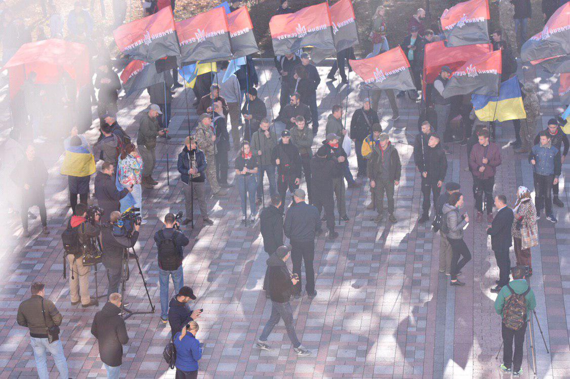 09:00 Под зданием парламента на улице Грушевского, 5 в Киеве начали собираться националисты.
