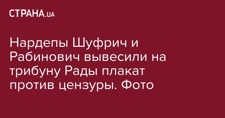 Перед заседанием Верховной Рады в среду, 2 октября, нардепы от "Оппозиционной платформы - За жизнь" Нестор Шуфрич и Вадим Рабинович повесили на трибуну плакат против цензуры.