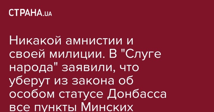 Никакой амнистии и своей милиции. В "Слуге народа" заявили, что уберут из закона об особом статусе Донбасса все пункты Минских соглашений