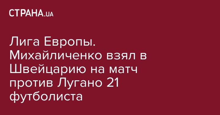 Лига Европы. Михайличенко взял в Швейцарию на матч против Лугано 21 футболиста