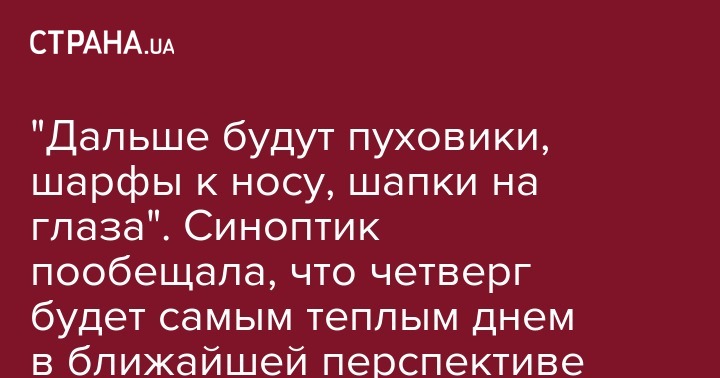 "Дальше будут пуховики, шарфы к носу, шапки на глаза". Синоптик пообещала, что четверг будет самым теплым днем в ближайшей перспективе