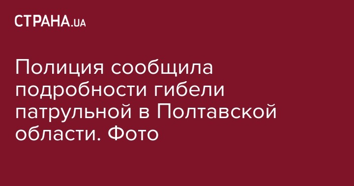 Во время патрулирования дорог в Полтавской области в ДТП погибла 35-летняя патрульная полицейская Марина Фетч. Об этом сообщается на Facebook патрульной полиции Украины.