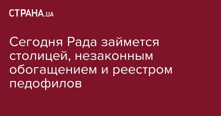 Сегодня Рада займется столицей, незаконным обогащением и реестром педофилов