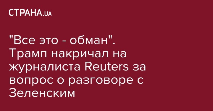Президент США Дональд Трамп резко отреагировал на вопрос американского журналиста, который спросил о его телефонном разговоре с президентом Украины. Об этом в среду, 2 октября, сообщает Reuters.