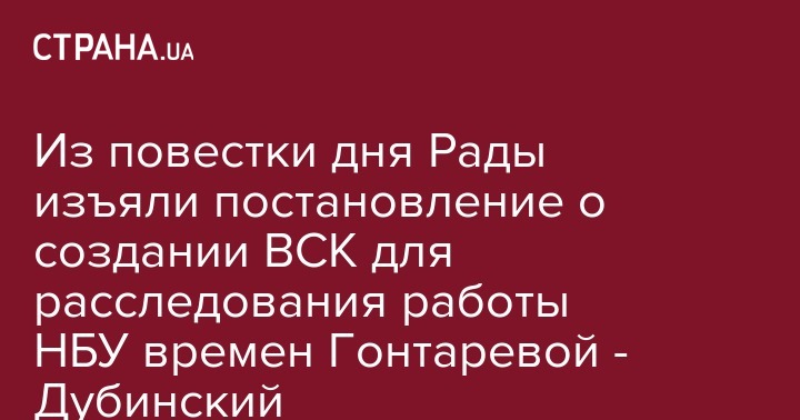 Из повестки дня Рады изъяли постановление о создании ВСК для расследования работы НБУ времен Гонтаревой - Дубинский