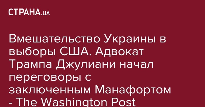 Вмешательство Украины в выборы США. Адвокат Трампа Джулиани начал переговоры с заключенным Манафортом - The Washington Post