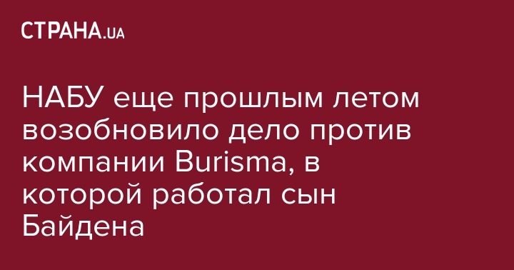 НАБУ еще прошлым летом возобновило дело против компании Burisma, в которой работал сын Байдена