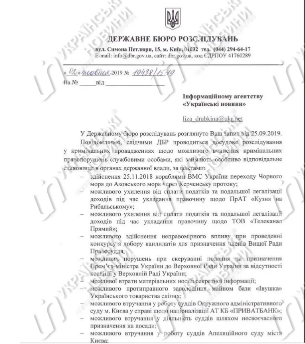 В ГБР отмечают, что следователи не дали разрешение на разглашение информации о проведении обысков и экспертиз для недопущения нарушения прав участников уголовных производств.