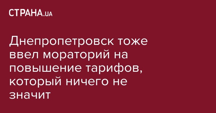 В решении, которое было принято в среду, говорится, что Днепр вводит мораторий до 1 января 2017 года на вступление в силу повышенных цен и тарифов для населения.
