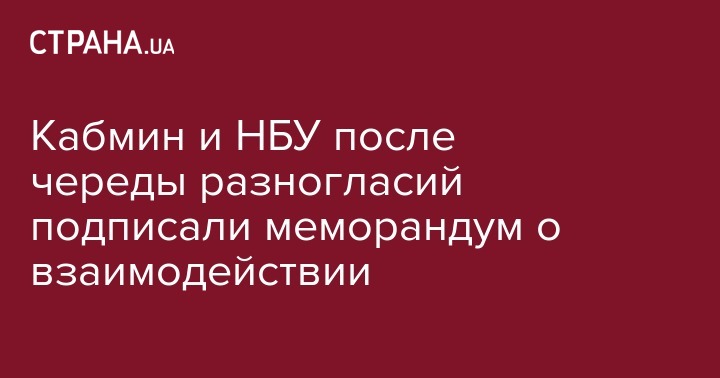 "Мы в меморандуме закрепили шаги, которые будем координировать как со стороны НБУ, так и со стороны Кабмина", - сказал в ходе подписания документа Смолий.