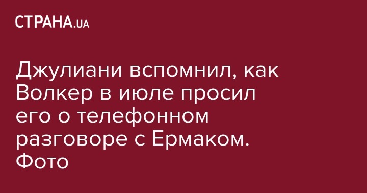 Адвокат американского президента Дональда Трампа Рудольф Джулиани заявил, что ушедший в отставку спецпредставитель госдепартамента США по Украине Курт Волкер обращался к нему в середине июля с вопросом, готов ли Джулиани поговорить с помощником президента Украины Владимира Зеленского Андреем Ермаком. Об этом он написал на своей странице в Твиттере.