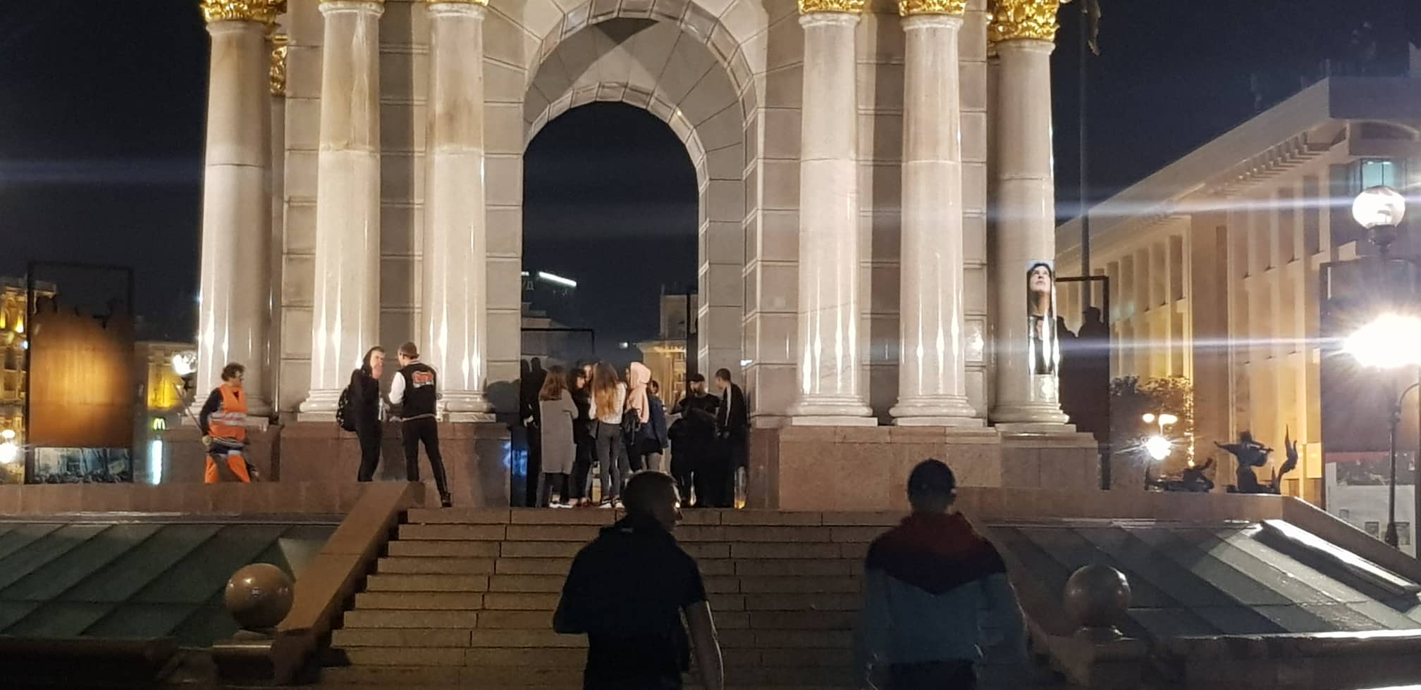 Стоит отметить, что с другой стороны стеллы, где установлена палатка против "капитуляции" расположились местные подростки, которые слушают в колонках, музыку российских рэперов.