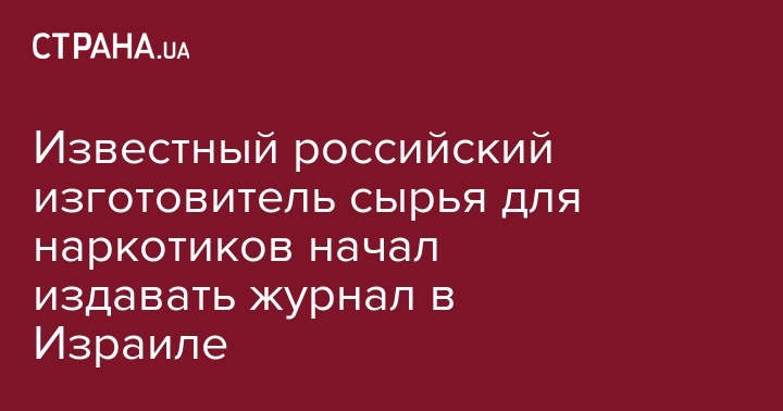 Известный российский изготовитель сырья для наркотиков начал издавать журнал в Израиле