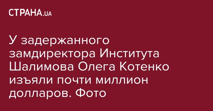 $840 тысяч изъяли правоохранители из банковской ячейки задержанного в четверг заведующего отделом трансплантации и хирургии печени Национального института трансплантологии им. Шалимова Национальной академии медицинских наук Украины. Об этом на своей странице в соцсети сообщила пресс-секретарь прокуратуры Киева Надежда Максимец.