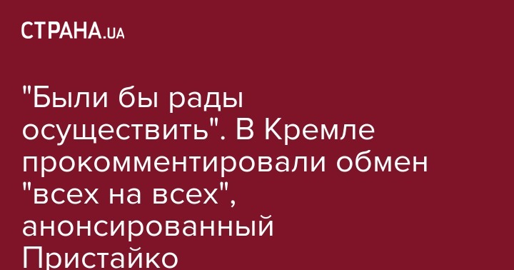 "Были бы рады осуществить". В Кремле прокомментировали обмен "всех на всех", анонсированный Пристайко