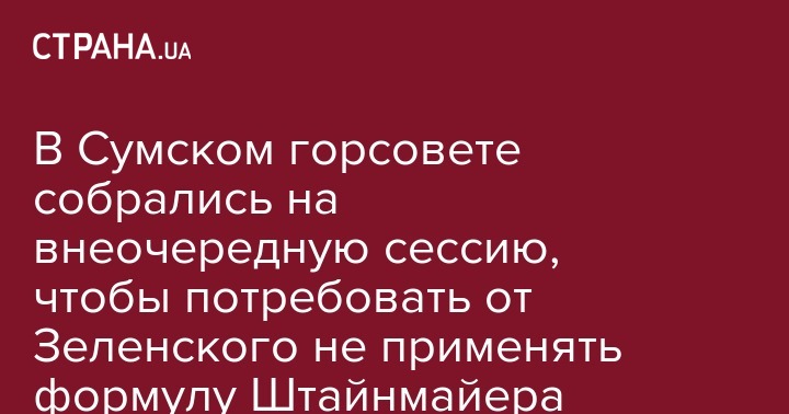 "Мы, депутаты Сумского городского совета, решительно отрицаем попытки через реализацию так называемой "формулы Штайнмайера" разменять перспективы Украинской государственности на призрачный мир ценой унижения страной-агрессором, что снова сделает Украину частью России. По нашему мнению, намерения по реализации так называемой "формулы Штайнмайера" является неприкрытой сдачей национальных интересов и началом капитуляции Украины в российско-украинской войне", – сказано в обращении.