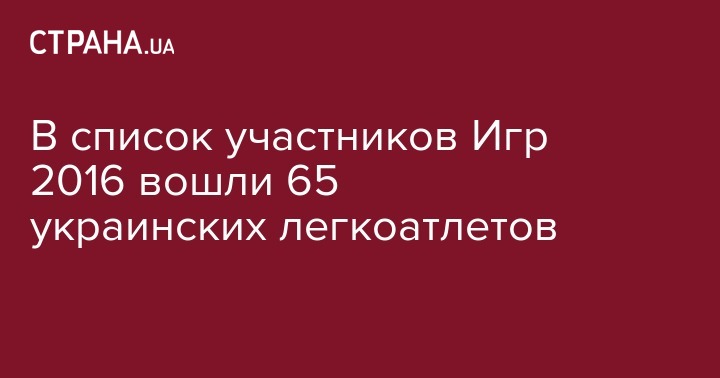 В список участников Игр 2016 вошли 65 украинских легкоатлетов