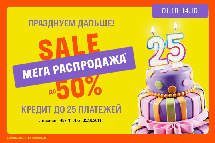 Однако на этом день рождения Фокстрот не заканчивается – покупателей ещё ждут сотни товаров со скидками до 50 % и отличная возможность выгодно приобрести технику в кредит от банков-партнёров.