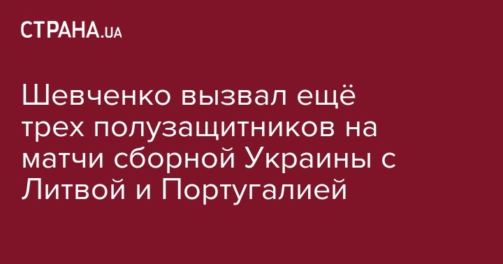 Главный тренер украинской сборной Андрей Шевченко вызвал в национальную команду еще трех дополнительных полузащитников - Сергея Сидорчука из "Динамо", Евгения Шахова из итальянского "Лечче" и Виктора Коваленко из "Шахтера".