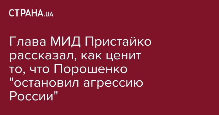 Руководитель Министерства иностранных дел Украины Вадим Пристайко заявил, что пятый президент страны Петр Порошенко остановил агрессию России на Донбассе.