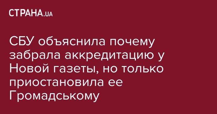 Служба безопасности Украины аннулировала аккредитацию журналиста "Новой газеты" (Россия) Юлии Полухиной и приостановила действие аккредитации журналистов "Громадського ТВ" Анастасии Станко и Константина Реуцкого.
