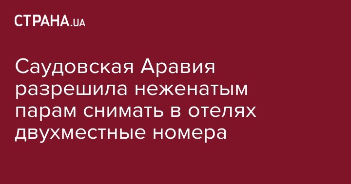 В Саудовской Аравии иностранным парам, которые не состоят в браке, теперь будет разрешено снимать общие гостиничные номера в рамках нового визового режима. Об этом сообщает ВВС