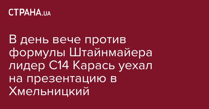 В день вече против формулы Штайнмайера лидер С14 Карась уехал на презентацию в Хмельницкий