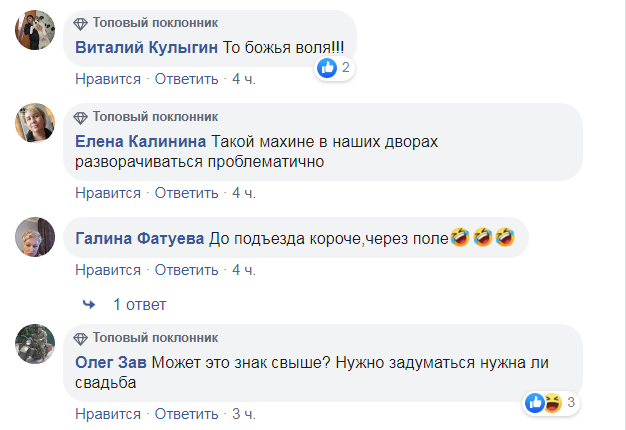 Под видео харьковчане выдвигают предположение, что лимузин не смог развернуться в забитом другими машинами дворе многоэтажки и выехал на футбольное поле. А там ему не удалось маневрировать из-за грязи и луж.