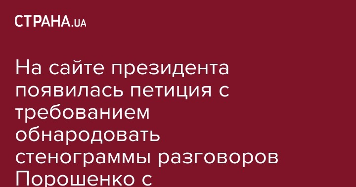 К действующему главе украинского государства обратились с требованием предать гласности тексты стенограмм телефонных разговоров бывшего президента Украины Петра Порошенко. Соответствующая петиция под №22/075404-еп появилась на сайте украинского президента.