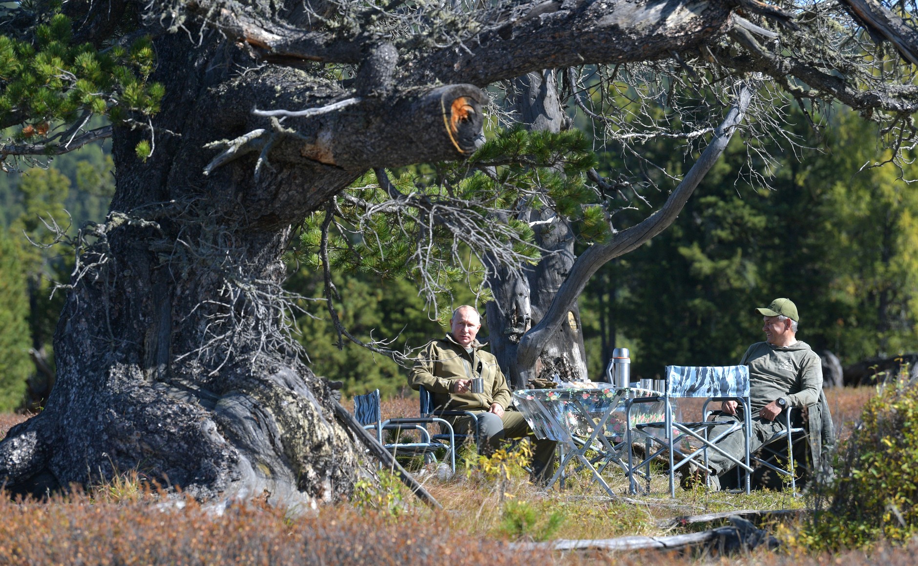 Путин с Шойгу на импровизированном пикнике в сибирской тайге. Фото с сайта Кремля