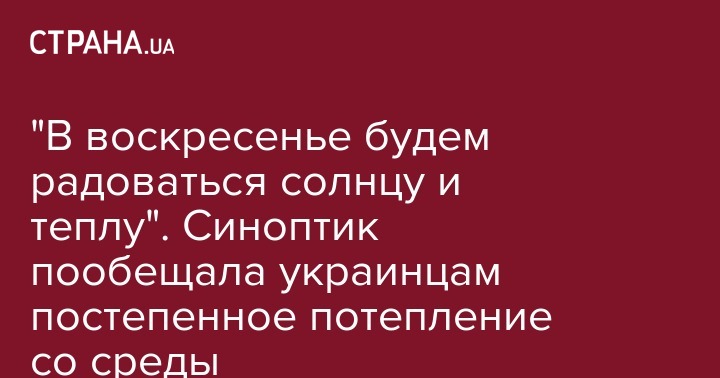 "В воскресенье будем радоваться солнцу и теплу". Синоптик пообещала украинцам постепенное потепление со среды