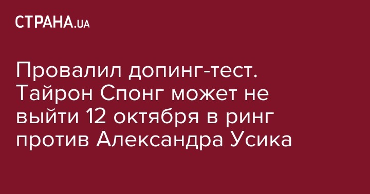 Боксер из Нидерландов Тайрон Спонг (14-0, 13 КО) может не выйти в ринг против украинца Александра Усика (16-0, 12 КО) из-за проваленного допинг-теста. Об этом сообщил промоутер Усика Эдди Хирн в своем микроблоге в Twitter.
