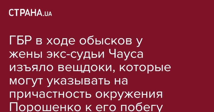 ГБР в ходе обысков у жены экс-судьи Чауса изъяло вещдоки, которые могут указывать на причастность окружения Порошенко к его побегу