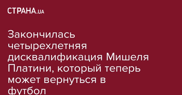 Завершилась четырехлетняя дисквалификация экс-президента Союза европейских футбольных ассоциаций (УЕФА) Мишеля Платини.