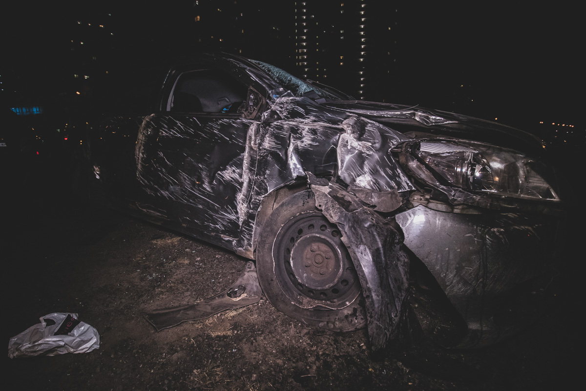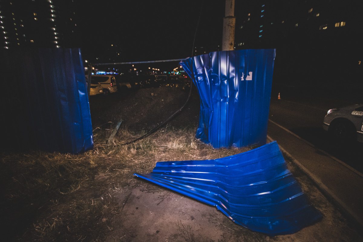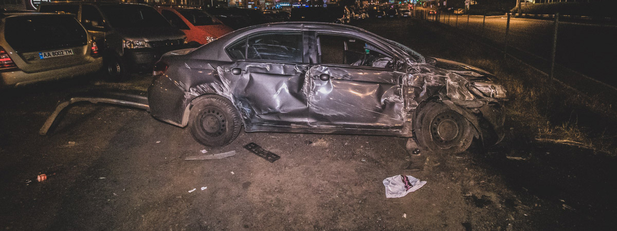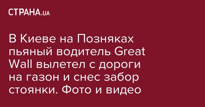 Около 21:30 водитель автомобиля Great Wall ехал по улице Григоренко в сторону улицы Гмыри. На развязке возле станции метро "Позняки" пьяный мужчина не смог справиться с управлением и вылетел на зеленую зону. Машина проехалась несколько десятков метров по газону и снесла забор автомобильной стоянки, за которым находилась насыпь. Great Wall подскочил на насыпи и перевернулся, в результате чего машина оказалась на боку.
