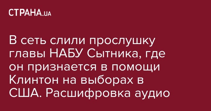 Ссылку на сюжет BlazeTV, в котором приводится аудиозапись, разместил в Twitter пользователь Райан Дженсен. "На сайте BlazeTV есть аудиозапись выступления Артема Сытника (директор Национальной антикоррупционного бюро Украины), рассказывающего о том, как они намеренно закрыли информацию о Клинтон и раскрыли о Манафорте. Они помогли сфальсифицировать выборы для Хиллари. Украина помогла HRC (вероятно, крупнейшая в стране организация по защите гражданских прав ЛГБТ, которую поддерживает Клинтон - Ред.)", - пишет Дженсен.
