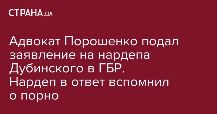 Адвокаты лидера партии "Европейская солидарность", экс-президента Петра Порошенко подали заявление в Государственное бюро расследований о возбуждении уголовного дела против народного депутата Александра Дубинского за заведомо ложное сообщение о преступлении.