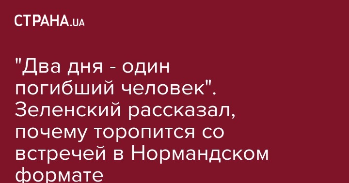 "Дата сегодня зависит и от нас с вами… И по поводу даты хочу сказать, что, к примеру, вчера я говорил с канцлером (ФРГ) Ангелой Меркель и мы поднимали этот вопрос, они будут обсуждать это с французской стороной, не буду говорить в какой день, в ближайшее время… а потом они будут дату предлагать российской стороне", - сказал он. При этом Зеленский заявил: "У меня уже есть варианты даты, на которые мы соглашаемся". "У меня есть табличка: два дня - один погибший человек. Так мне надо торопиться?!", - сказал он.