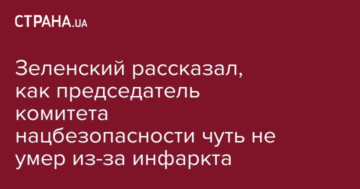 Зеленский рассказал, как председатель комитета нацбезопасности чуть не умер из-за инфаркта